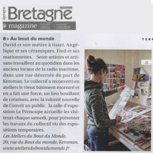 Ateliers du Bout du MondeMarie Aurillon11 novembre 201617 novembre 2016Depuis un peu plus d’un an j’ai déplacé mon atelier au sein des Ateliers du Bout du Monde à Lorient!
